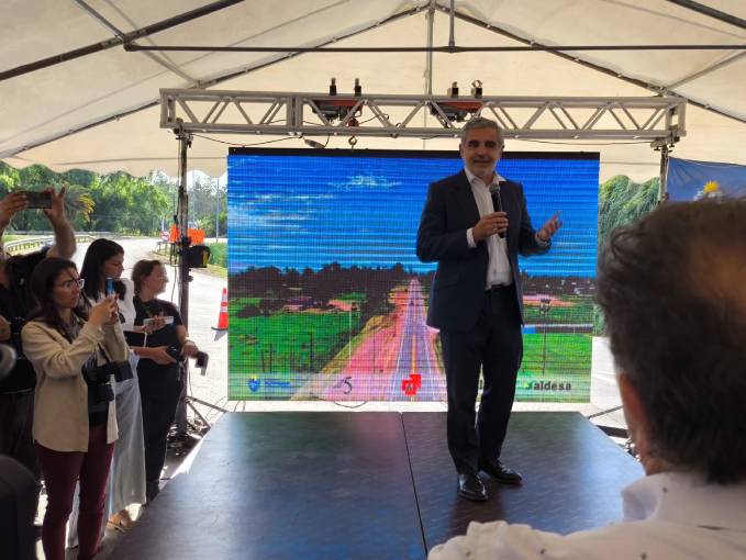 El ministro de Transporte y Obras Públicas de Uruguay, José Luis Falero, ha inaugurado un primer tramo del Circuito 5 de la Ruta 15, en presencia del presidente de la República, Dr. Luis Lacalle Pou. El acto contó, además, con la participación del director general de Inversiones de Aldesa, Miguel Ortega, y la presencia de Enrique del Castillo y Pablo Ruiz, director de Construcción Uruguay y director de la concesionaria Autovías 5, respectivamente.