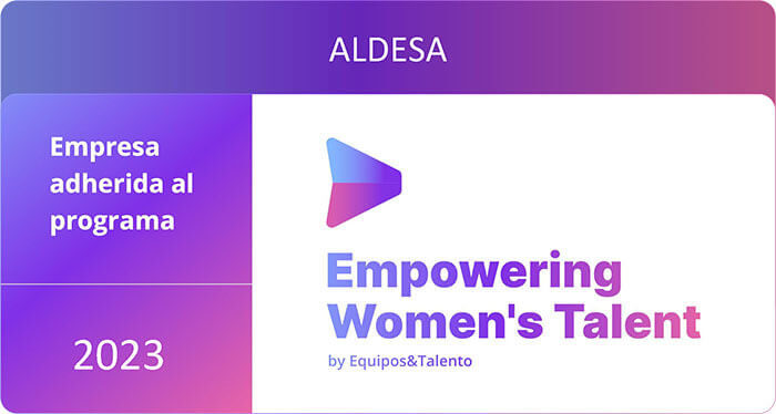 Aldesa ha recibido el sello Empowering Women’s Talent como reconocimiento a su esfuerzo por potenciar el talento femenino, la igualdad y la diversidad. La organización ha formalizado su adhesión al programa Empowering Women’s Talent para poner en valor su apuesta por la igualdad efectiva de oportunidades, así como por la diversidad dentro de nuestros equipos y el compromiso con el empoderamiento de la mujer. En este sentido, la organización busca también tener un rol activo a favor de la igualdad de género y una cultura más inclusiva.