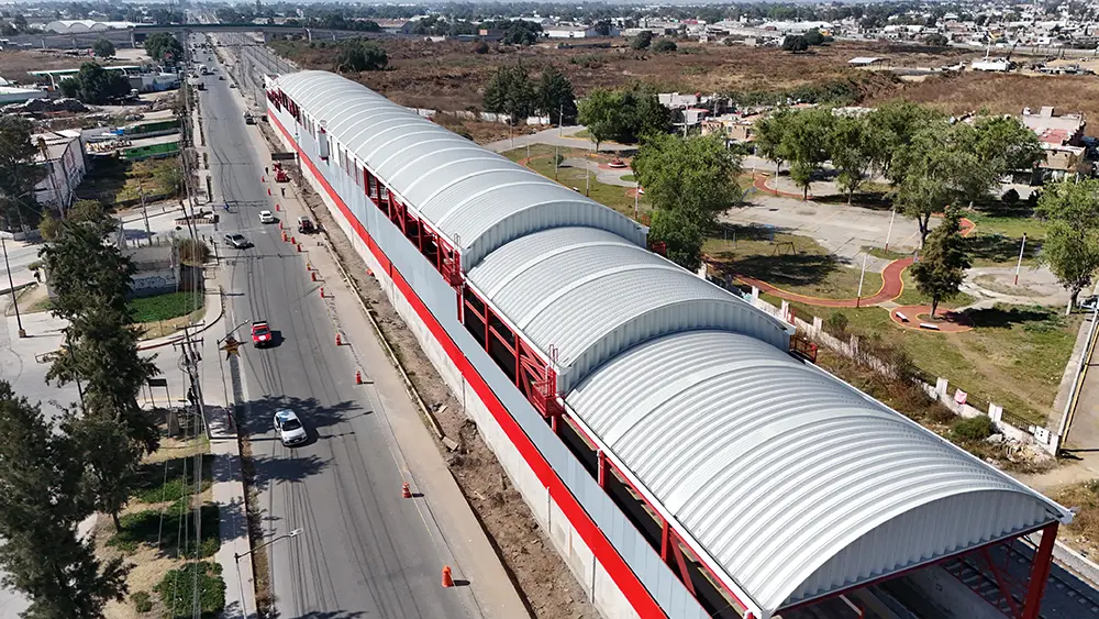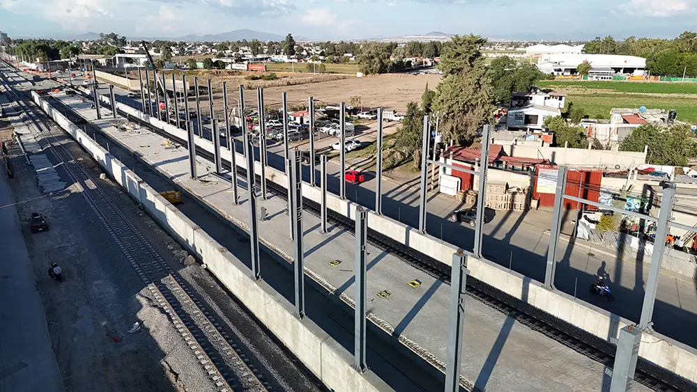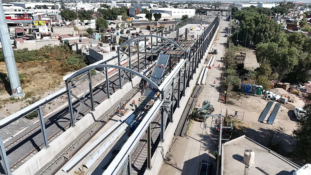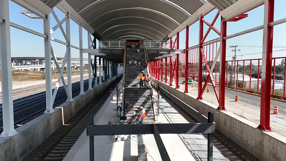 Construcción integral de cinco estaciones correspondientes a la ampliación del Ferrocarril Suburbano en el tramo Lechería–Aeropuerto Internacional Felipe Ángeles (AIFA), bajo contrato de obra a precio alzado y tiempo determinado. Estaciones 1, 2 y 4: ejecución completa de las estaciones y cuartos técnicos, incluyendo cimentaciones, arquitectura, acabados, instalaciones eléctricas y mecánicas, equipamiento general y elevadores panorámicos. Estación 3: suministro y montaje de la estructura metálica autoportante, cubierta y faldones; construcción de cuartos técnicos con acabados e instalaciones. Estación 5: cimentación de la estación y cuartos técnicos, montaje de estructura metálica, cubierta y faldones, y acabados e instalaciones para puesta en funcionamiento. Las estaciones cuentan con andenes centrales de 210 metros de longitud, cubiertas metálicas de diseño autoportante para optimizar la eficiencia estructural, pisos de mármol en zonas de uso público, iluminación natural optimizada, y accesibilidad garantizada mediante escaleras amplias y elevadores. El proyecto contempla además la integración de instalaciones técnicas para señalización ferroviaria, sistemas de control, climatización en áreas técnicas, así como canalizaciones para redes eléctricas y de comunicación.