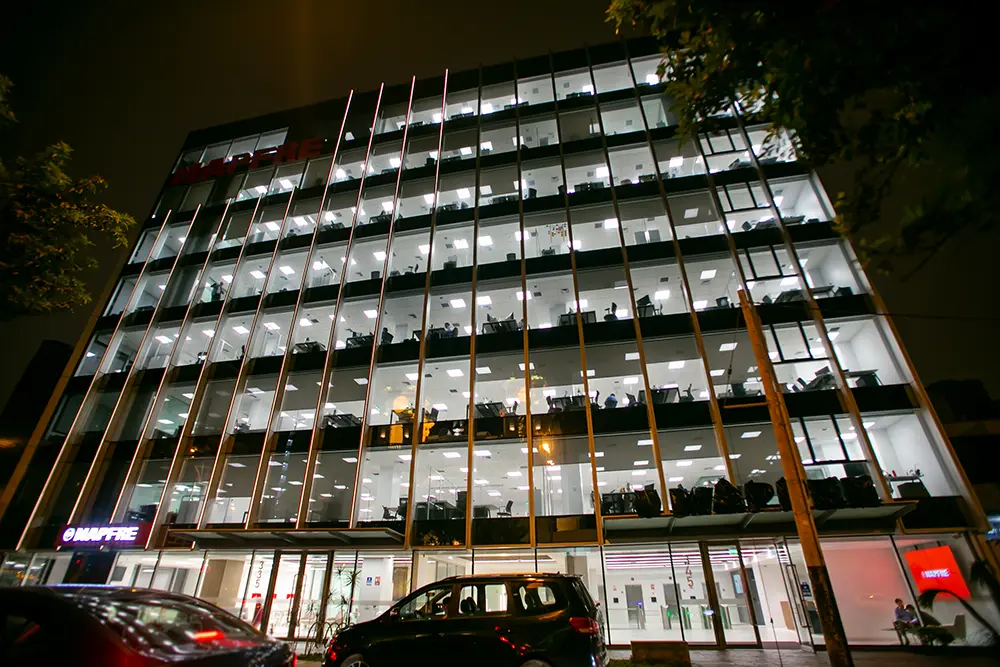 CONSTRUCCIÓN DE LA NUEVA SEDE CORPORATIVA DE MAPFRE EN LIMA (PERÚ), EJECUTADA EN DOS FASES CONSECUTIVAS. LA PRIMERA FASE INCLUYÓ LA CONSTRUCCIÓN DE CINCO NIVELES DE SÓTANO CON MUROS PANTALLA Y ESTABILIZACIÓN DE TALUDES. LA SEGUNDA FASE ABARCÓ LA ESTRUCTURA COMPLETA DEL EDIFICIO, ACABADOS DE ALTA CALIDAD Y SISTEMAS SOSTENIBLES. OBRA EJECUTADA BAJO MODALIDAD SUMA ALZADA, EN ENTORNO URBANO COMPLEJO Y CON ALTA EXIGENCIA TÉCNICA.